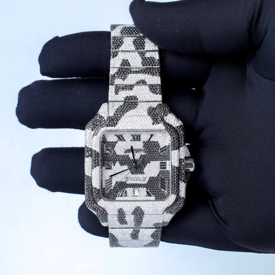 Customizable Square Fashion Business Watch Moissanite Rainbow Dial Quartz Movement VVS 5mm Thickness Stainless Steel Band