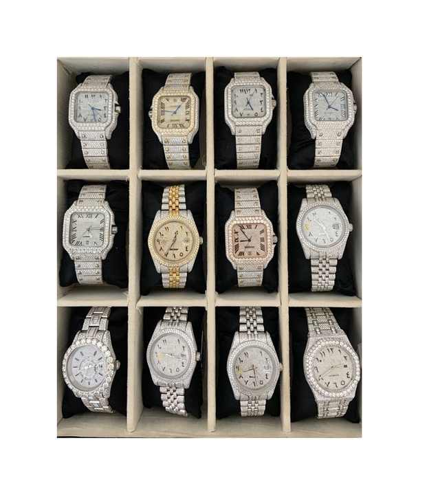 Moissanite Diamond Luxury Quartz Sport Watch Stainless Steel Band Classic Fashion Men's Watch Bulk Supply