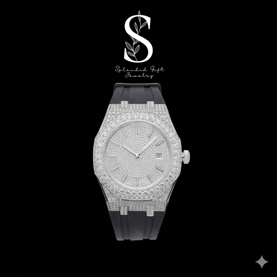Moissanite Diamond Watch Full Iced Out Arabic Numeral Function Men's Watch Stainless Steel Mens and Women Watch