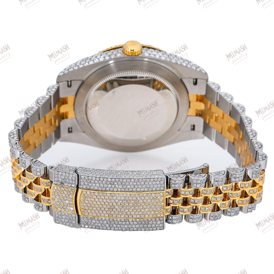 Moissanite Diamond Watch Iced Out Luxury Design with Black Dial, Roman Numerals, Date Window & Full Pave Bracelet, Hip Hop Style