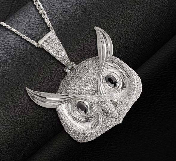 Moissanite Full Diamond Iced Owl Pendant Chain Sterling Silver Gothic Halloween Gift Necklace Locket for Fine Pendants Charms
