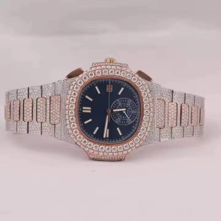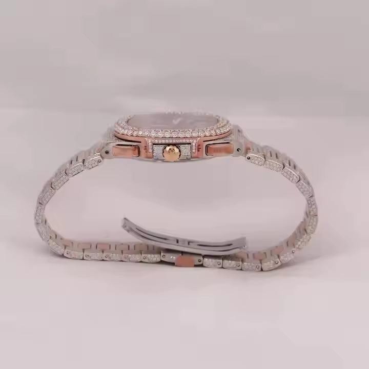 VVS Moissanite Full Diamond Stainless Steel Luxury Square Quartz Automatic ETA Movement 10 Bar Water Resistance Couple Watch