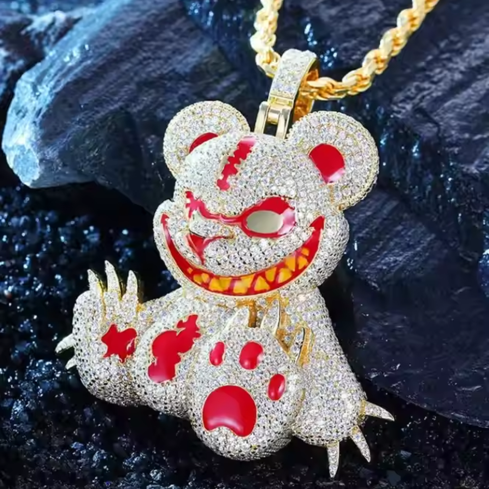 Moissanite Hip Hop Style Round Cut Cute Gold Plated Pendant Jewelry for Anniversary 925 Sterling Silver