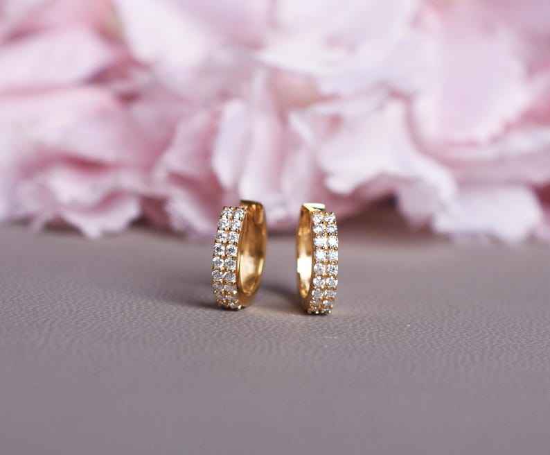 Moissanite Hoop Earrings 925 Sterling Silver 14K Gold Plated Elegant Bridal Gift Gemstone Jewelry For Women