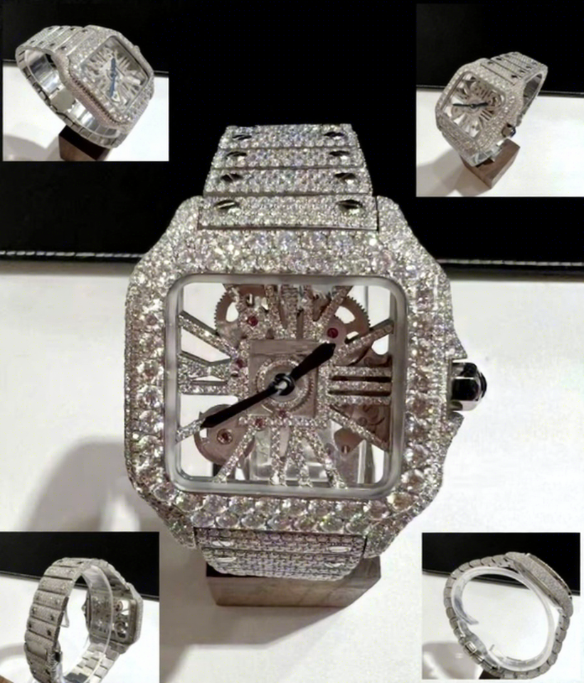 Moissanite Iced Out Square Glass Dial Skeleton Designer Watch for Men Automatic Mechanical Movement Luxury Diamond Hip Hop Style