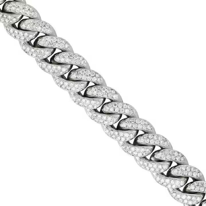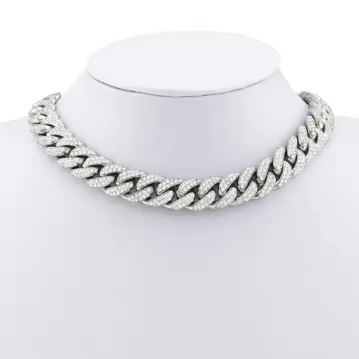 Moissanite Prong Miami Link Chain Necklace Two Tone 14k Yellow Gold Vermeil Over Solid 925 Silver Diamond Tester