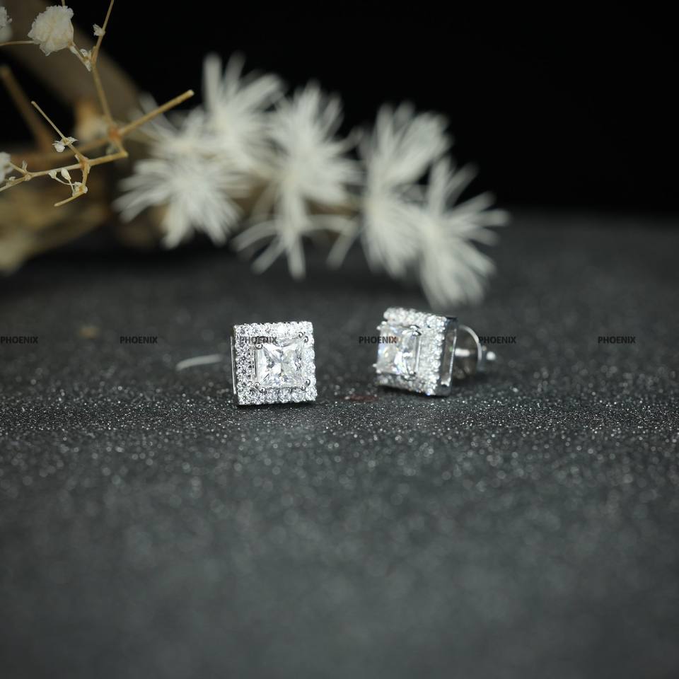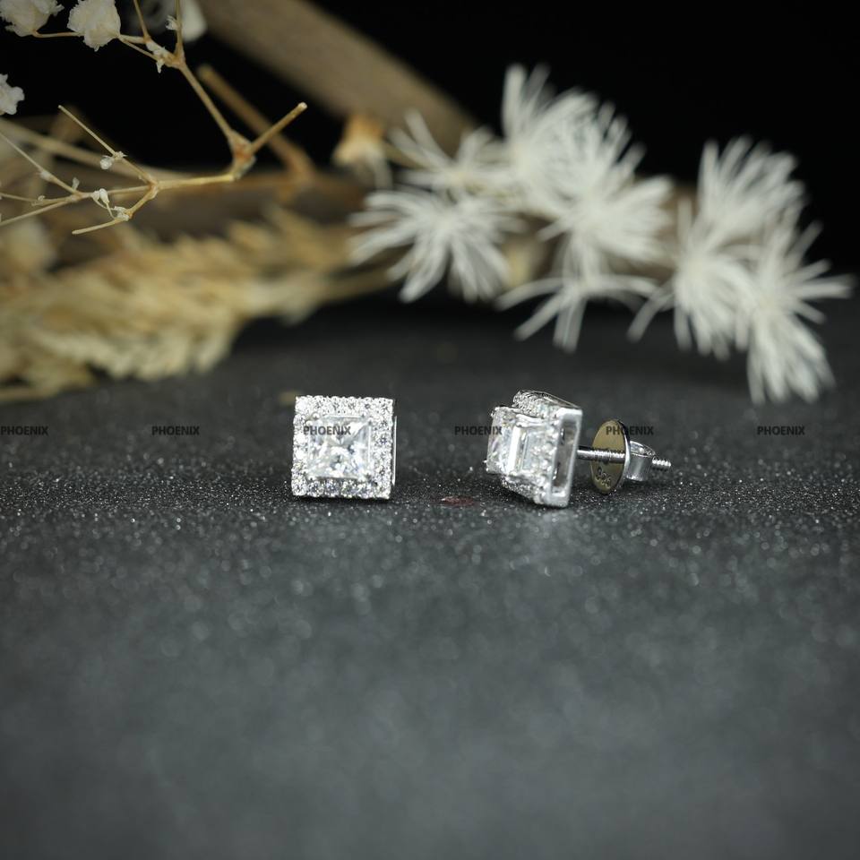 Moissanite Round Brilliant Cut 925 Sterling Silver Halo Stud Earrings for Men Women by Phoenix Enterprise by Phoenix Enterprise