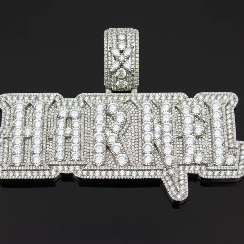 Moissanite Round Brilliant Cut Rhodium Plated Hiphop Charm Pendant 925 Silver for Men's Party Occasion