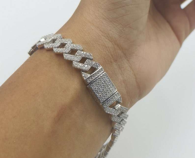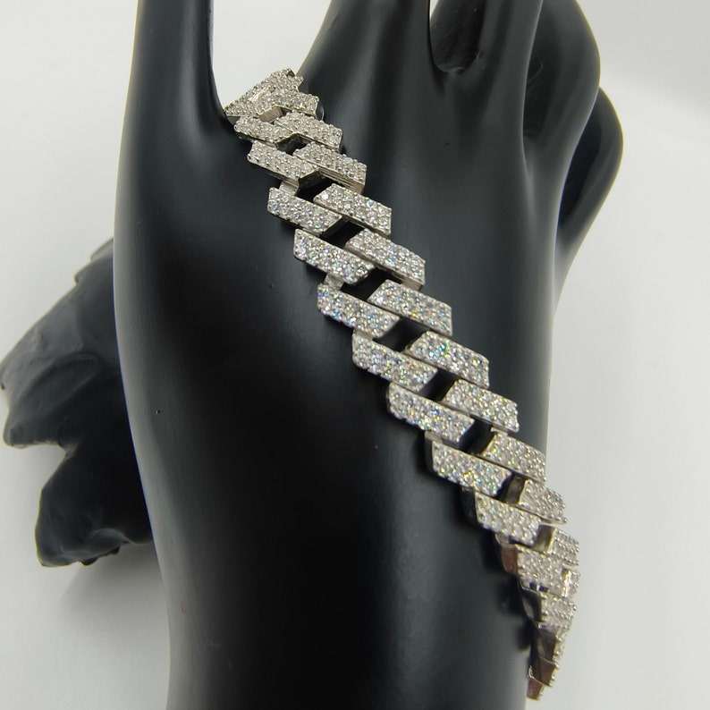 Moissanite Round Diamond Iced Out Cuban Bracelet For Unisex 925 Sterling Silver Fine Jewelry Party Gift For Partners