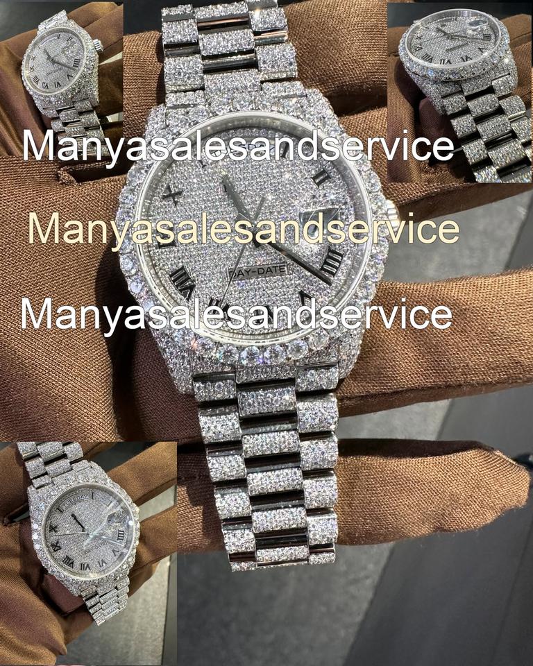 Moissanite Stainless Steel Glass Dial VVS Mens 38mm Automatic Bracelet Clasp 10 Bar Water Resistance Case Dual Tone Luxury Watch