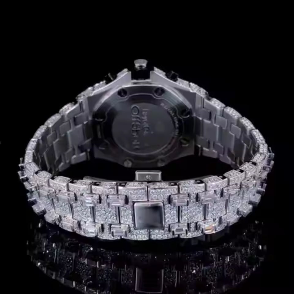 Moissanite Studded Diamond Watch Iced Out Watch for Men's Custom Hip Hop Watch Silver Plated Diamond Jewelry