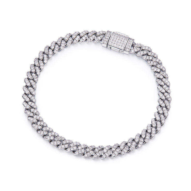 Moissanite VVS Iced Out Round Cut Diamond Cuban Bracelet 925 Sterling Silver Double Row Cubans Trendy Style for Parties Weddings