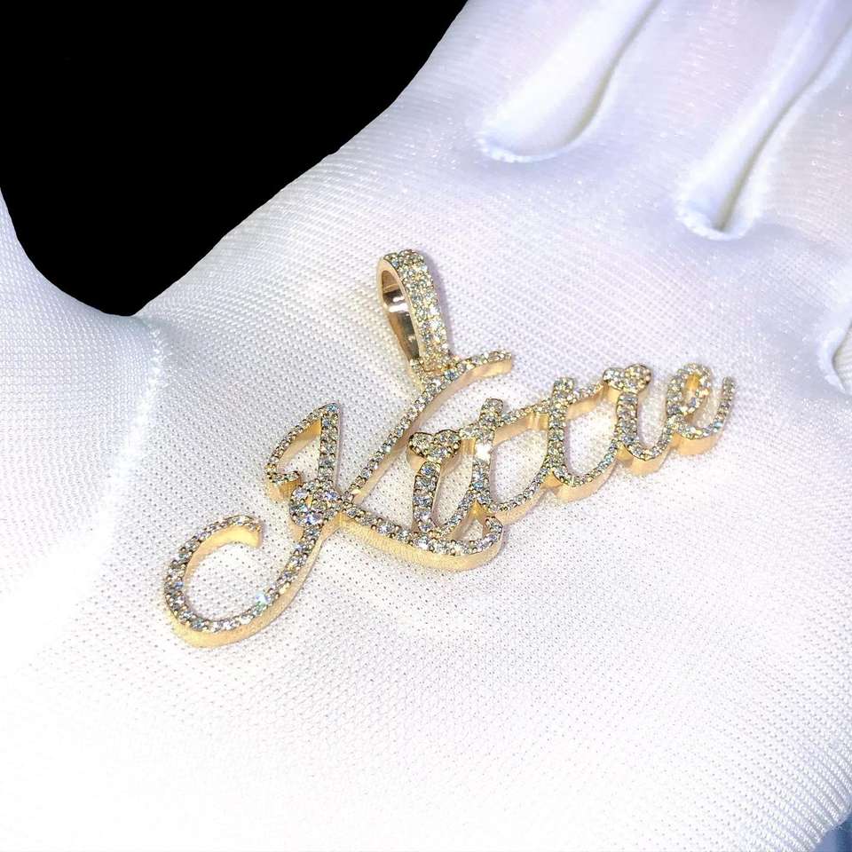 Moissanite VVS Round Cut Diamond Pendant Necklace Hip Hop Iced Letters Pendants 925 Sterling Silver