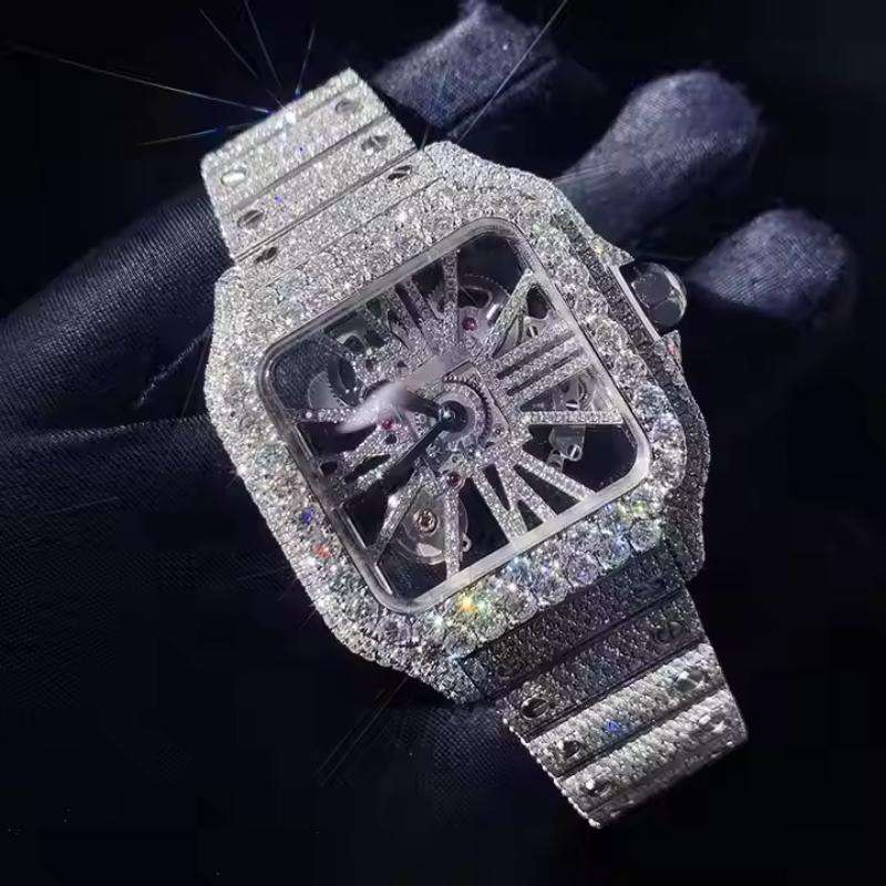 Moissanite Watch Brilliant Cut Vvs1 Square Antique Hip Hop Luxury Quartz Fashion Business Glass Dial Collection Watch from India