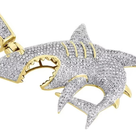 Moissanite White Round Shape Shark Pendant Beautiful Customized Shark Pendant &HIP HOP Pendant and Diamond Jewelry