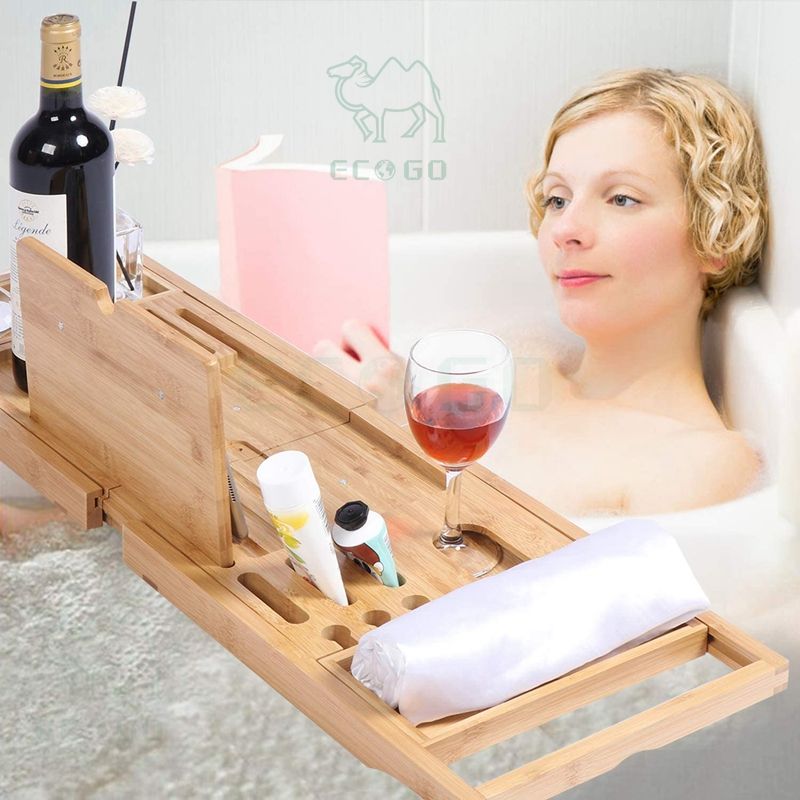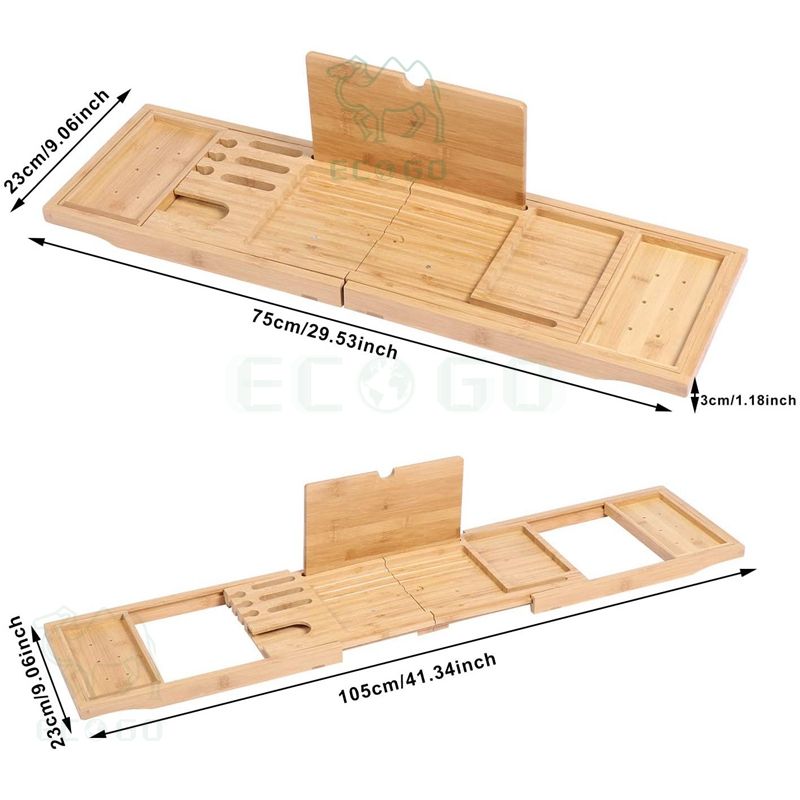 Moisture-Proof Extendable Bath Shelf With Towel Holder Bamboo Tub Tray 100% Natural Bathtub Tray Table