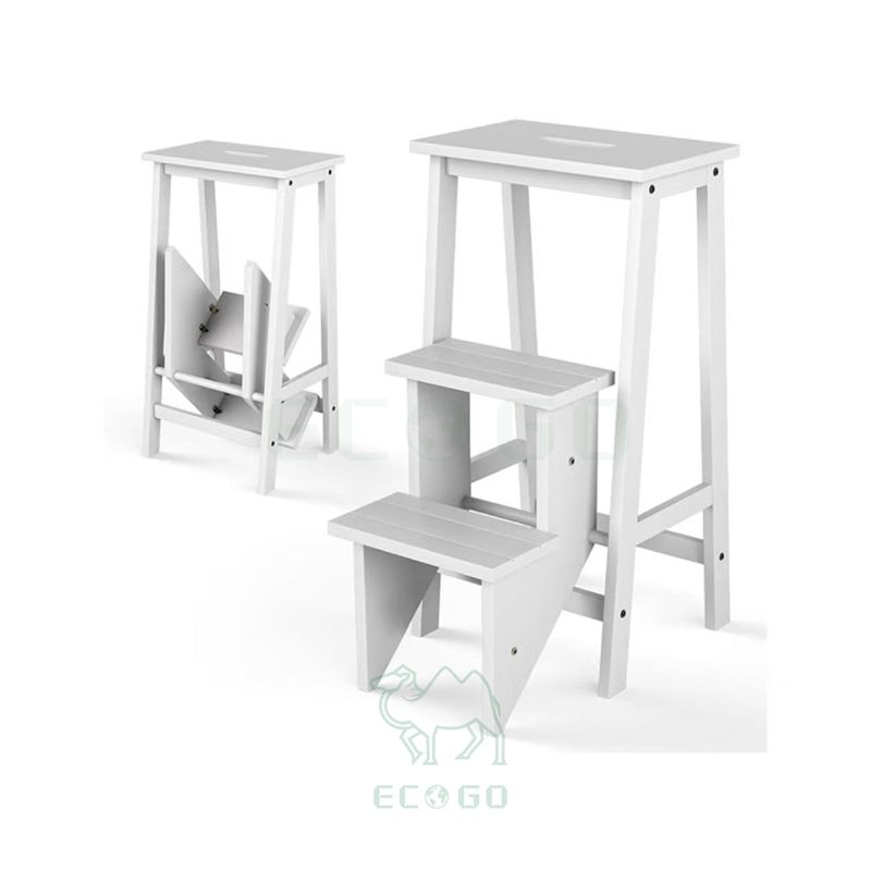 Moisture-proof Folding 3 Step Stool 3 in 1 Wooden Step Ladder