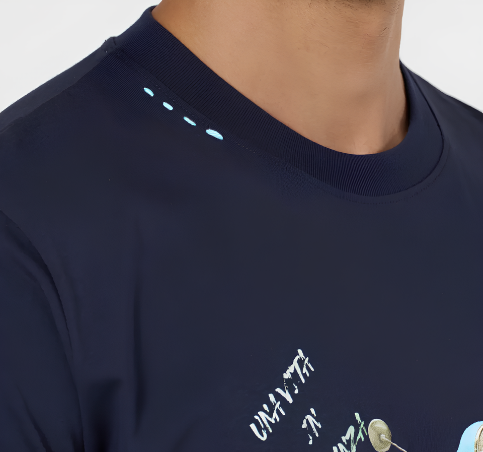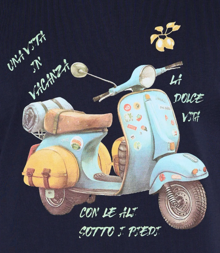 Molo 68 Summer Days 100% Italian Pure Cotton T-shirt Navy Blue Scooter Sleeves 180 Grams Silk-Screen Printing ODM Supply for Men