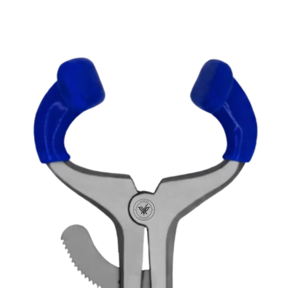 Product Specification:Molt Mouth Gag, Pediatric, Dental Surgical Instrument, Mouth Opener Mouth Retractor, Blue PVC Grip Curved Jaws, Ratchet Lock System, Finger Ring Handle