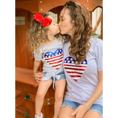 TD Top with Stripe Insert and Sequin for Smiley Patch Family Matching Outfits Product