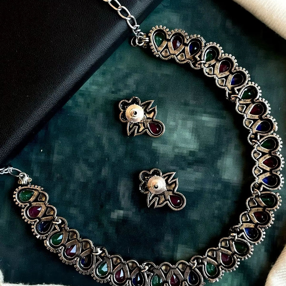 Monalisa Brass Stone Choker with Earring Set for Daily Wear Party Wedding Engagement Anniversary Ethnic Style