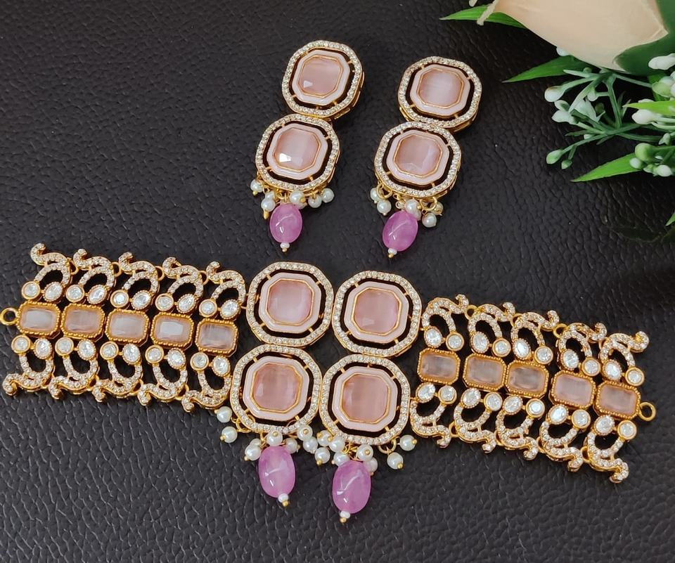Monalisa Cutting Stone Moissanite polki Necklace Set Monalisa Beads Premium Quality Set Ideal For Party Wear, Festive Occasions