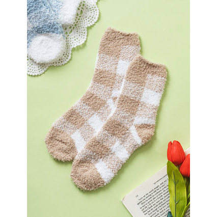 Monfoot Women's Brown Jacquard Print Sleeping Socks Customizable Crew Length Breathable Nylon Heat Feature Knitted Logo Cuff