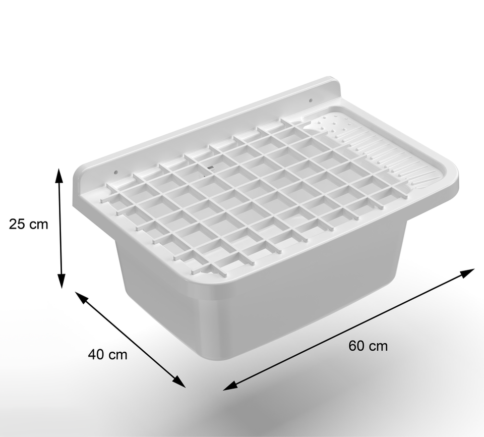 Mongardi White PP Resin Wall-Mounted Utility Sink L60 X W40 X H25 cm Includes Drain Fixing Kit and Grid Utility Basins