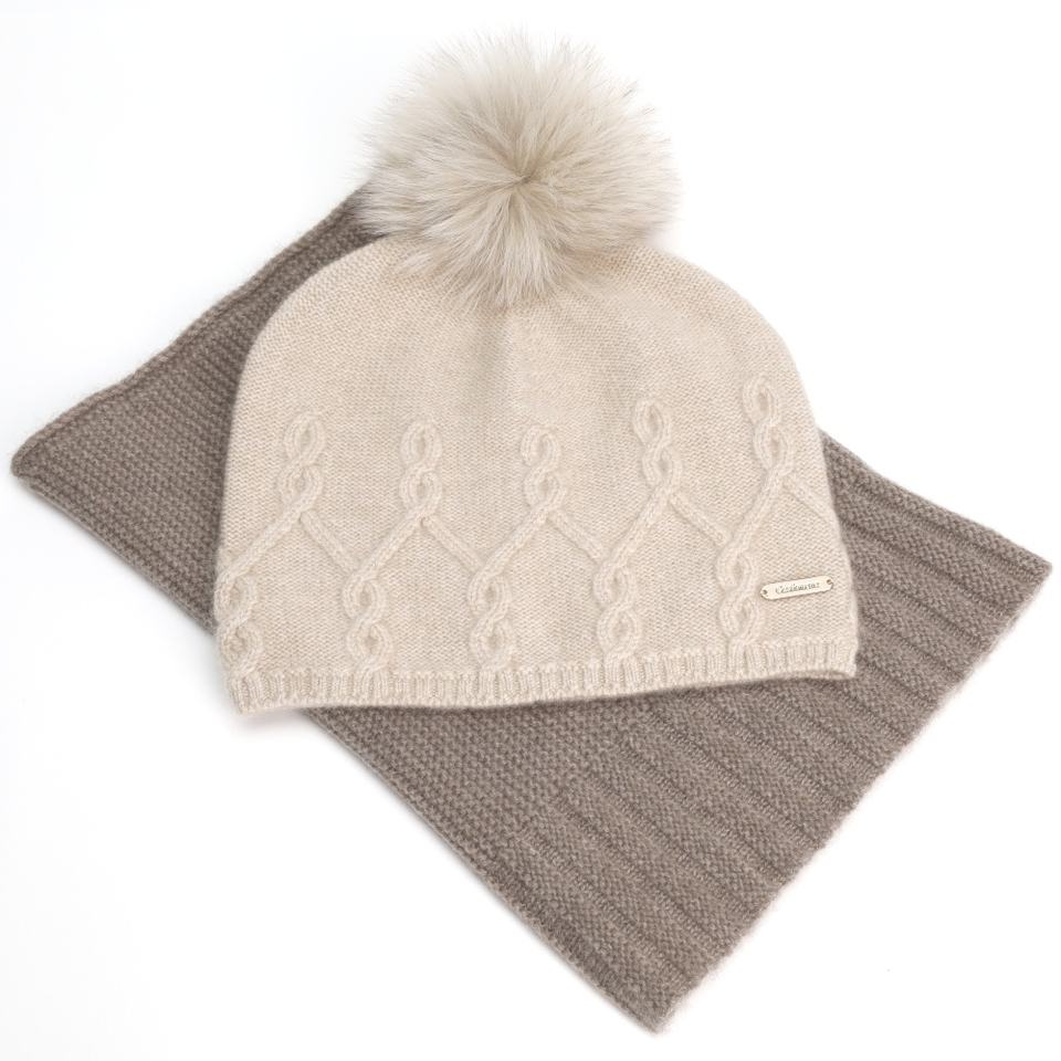 Mongolian 100% Cashmere Beanie Cable-Knit Design with Pom-Pom Natural Organic Beige Color Hat Luxury Breathable light beanie