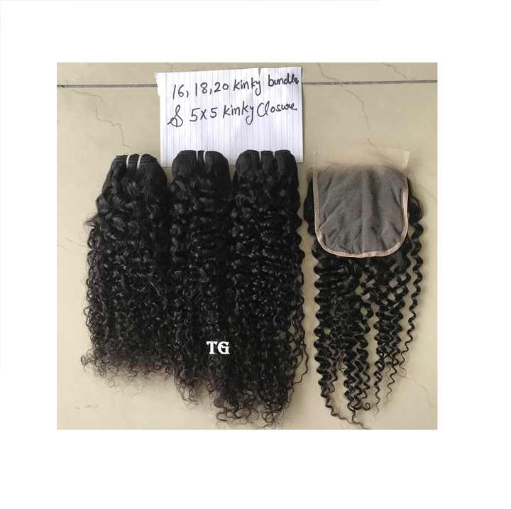 Product Name:16" 18" 20" kinky curly bundle with 5x5 transparent lace closure hair