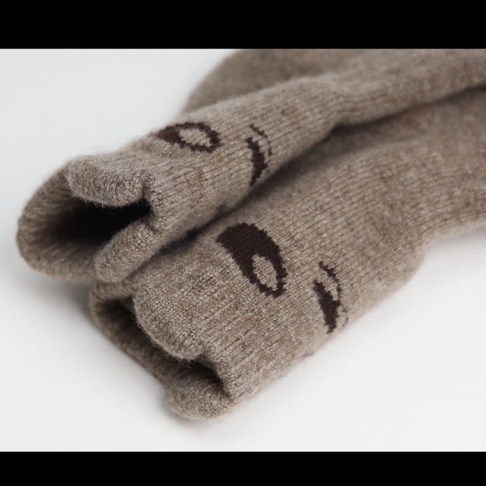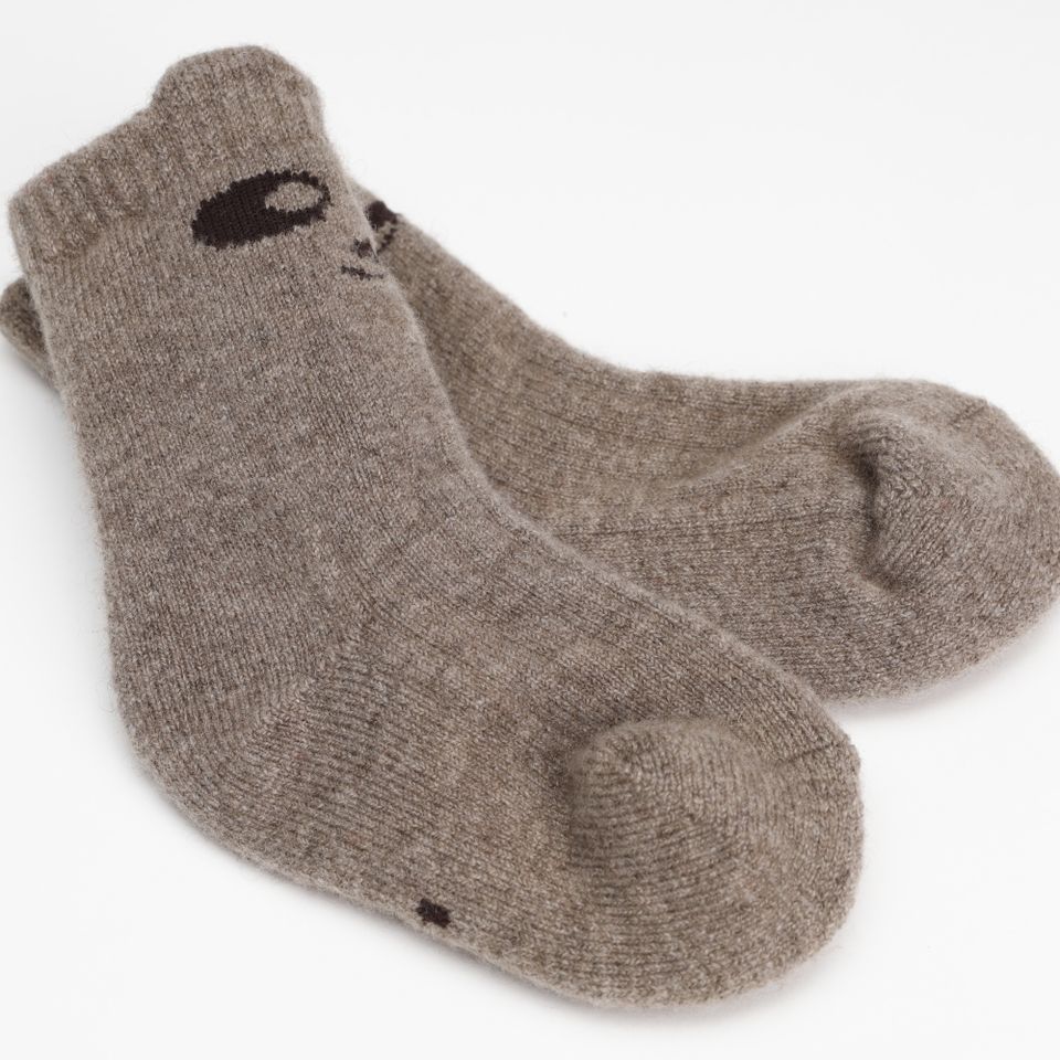 Mongolian Cashmere Baby Socks Warm Brown with Cute Animal Face Design Thicker Sole for Children Wholesale