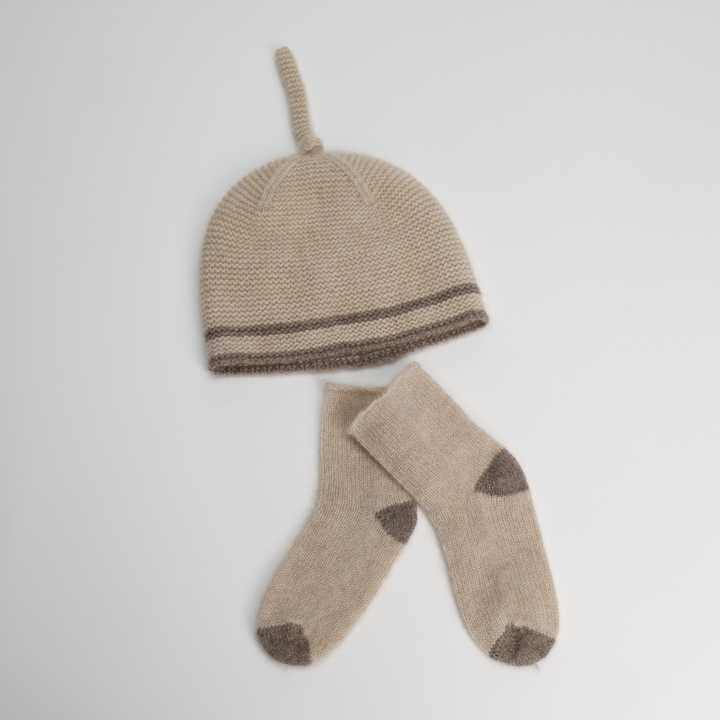 Mongolian Cashmere Newborn Hat and Socks Gift Set Hypoallergenic and Breathable Moisture-Wicking for Sensitive Skin