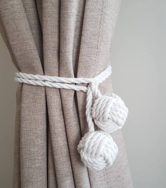 Monkey fist curtain tieback, macrame curtain tiebacks, cotton rope curtain tiebacks, white curtain tieback, nautical tie backs