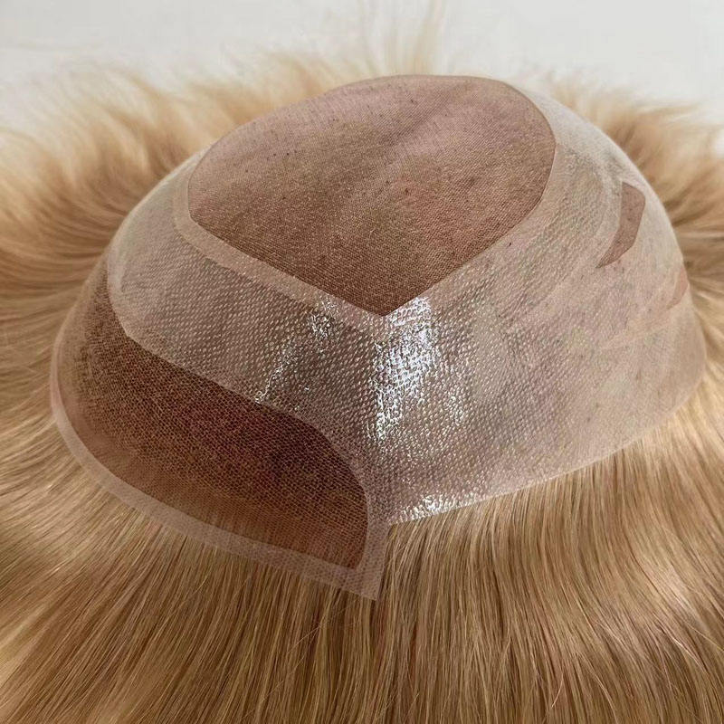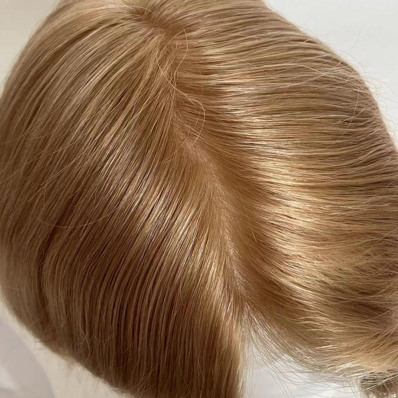 Mono+Lace Base Mens Remy Hair French Lace Natural Wave Wigs Toupee Piece Hair System for Light Brown Good Quality BH #22