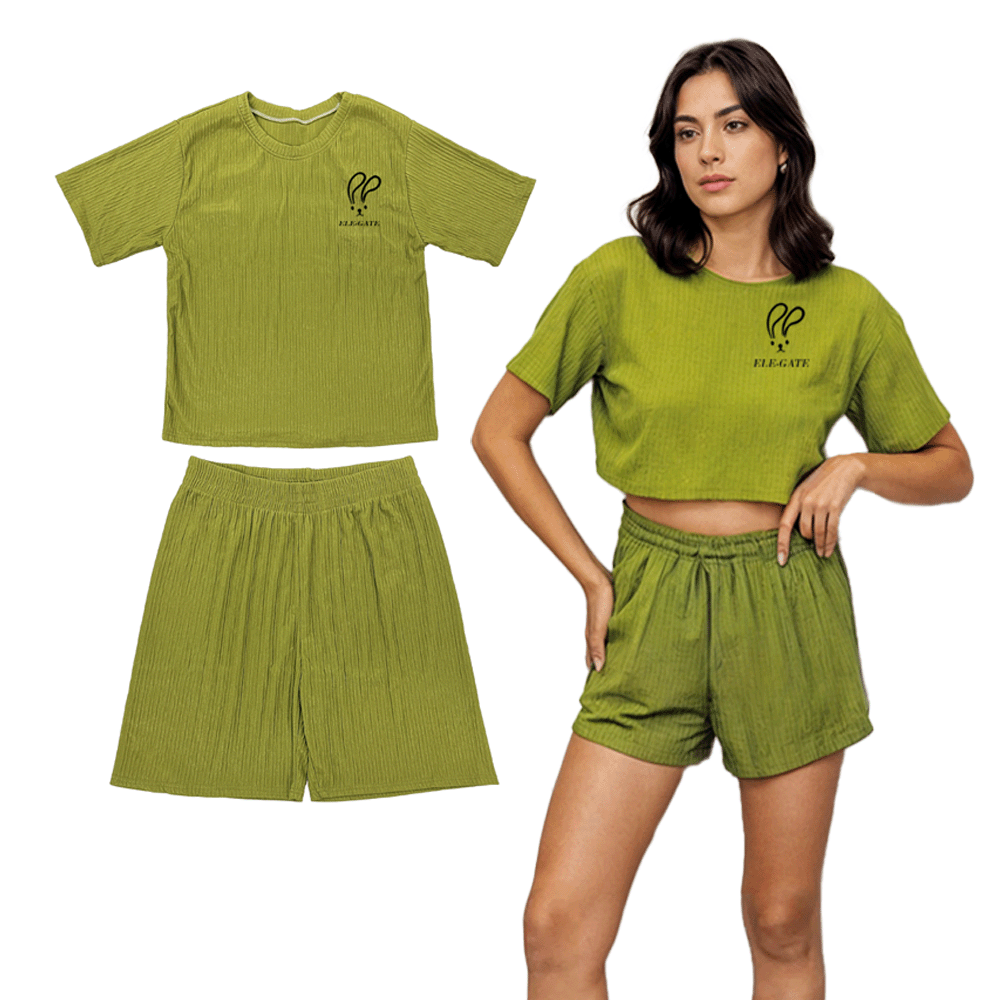Monochromatic Short and Crop Top Coordinate - GREEN