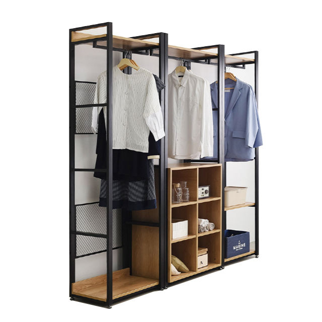 Monster Furniture Bedroom Wall Wooden Metal Modular Open Wardrobe Design Organizer Walking Closet