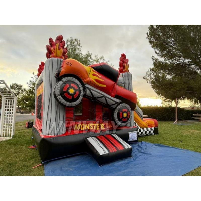 Monster Truck Themed Inflatable Castle with Slide Fun Bounce House for Kids