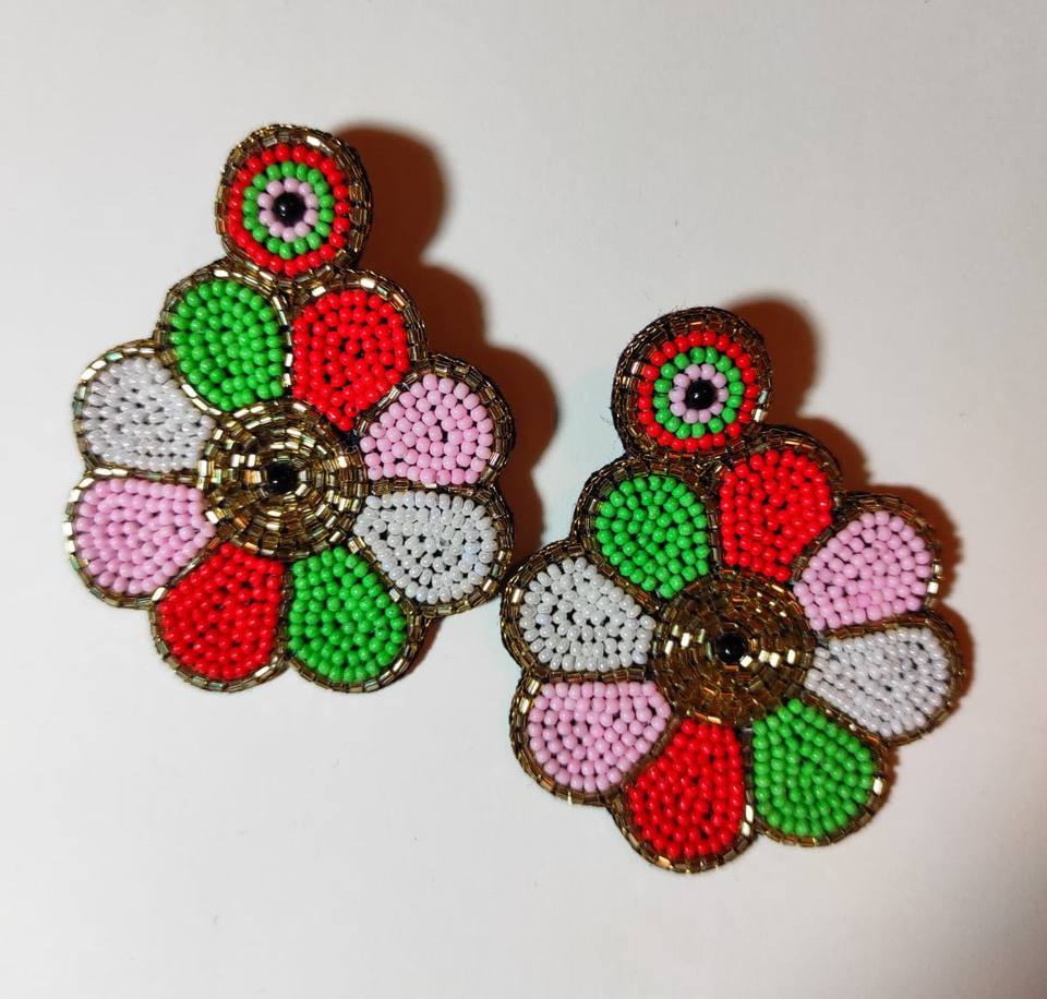 Monstera Leaf Embroidered Glass Beads and Sequined Earrings
