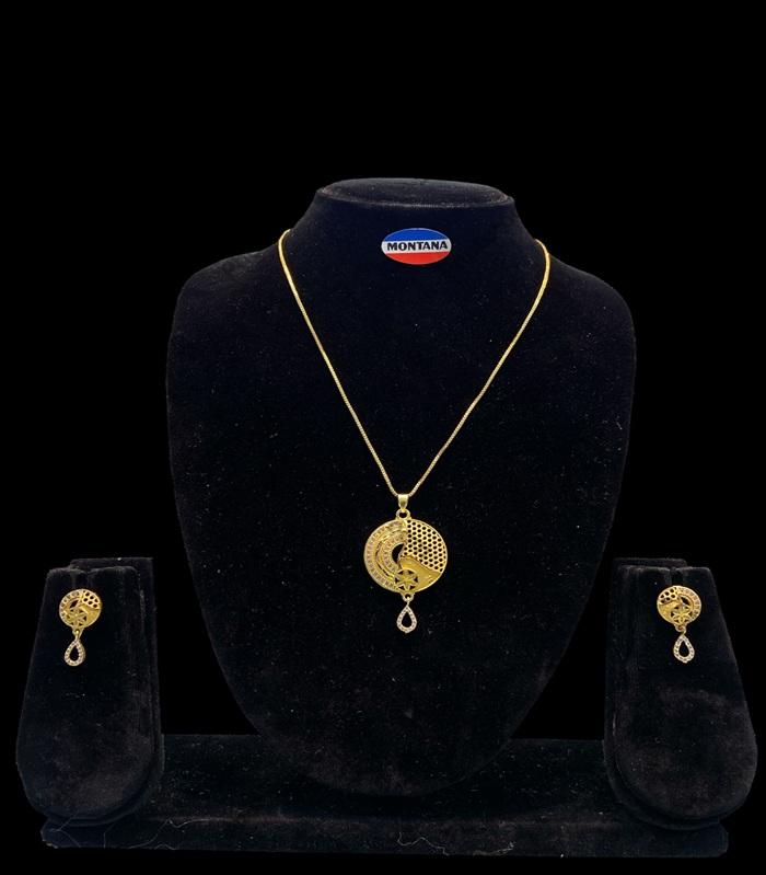 Montana Women's Classic Heart Shape Natural Stone Charm Pendant Set with Brass Plating for Wedding Engagement