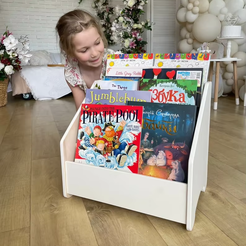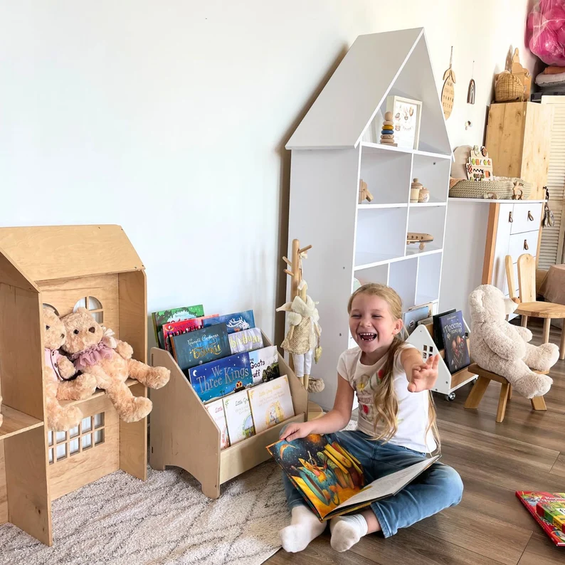 Montessori Bookshelf Wooden Kids Book Shelf White Kids Bookcase Custom Nursery Bookcase Montessori Furniture Children Bookcase