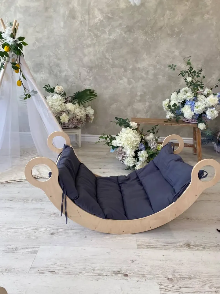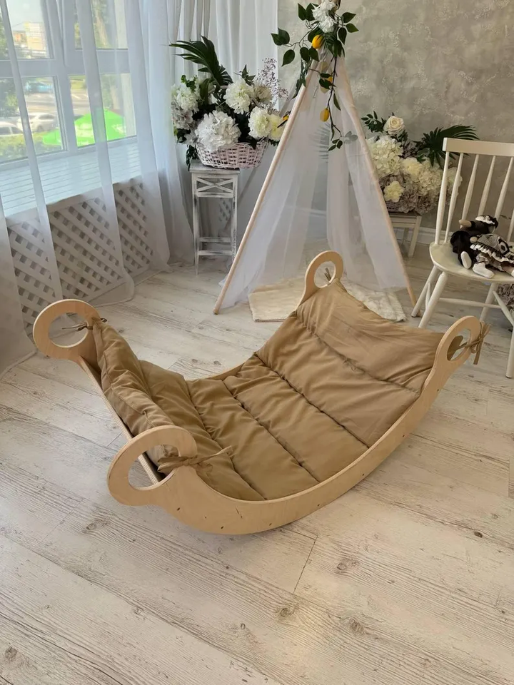 Montessori Climbing Arch Wooden Swing Rocking Chair with Pillow Balance Board Climbing Frame Rock Ramp Slide Educational Toys