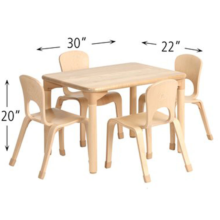 Solid Wood 5-Piece Children's Table and Chair Set FCJ Kid Furniture for School Bathroom Gym