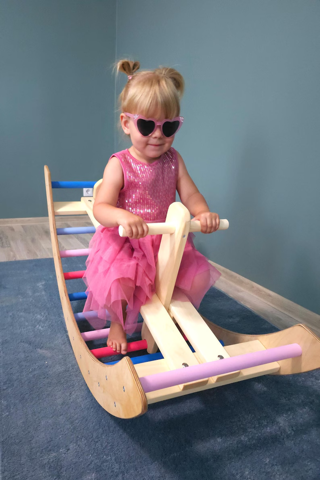 Montessori Inspired Wooden Swing and Arch Indoor Climbing Play Set Wooden Climbing Combo