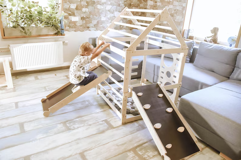 Montessori Playhouse with Slide Toddler Climber Indoor Playground Kids Climbing Toy