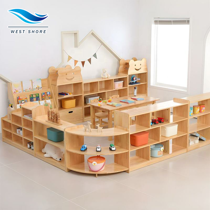 Montessori Preschool Daycare Cubby Classroom Wooden Table Chair Set Kindergarten Storage Cabinets Design for Childcare Center