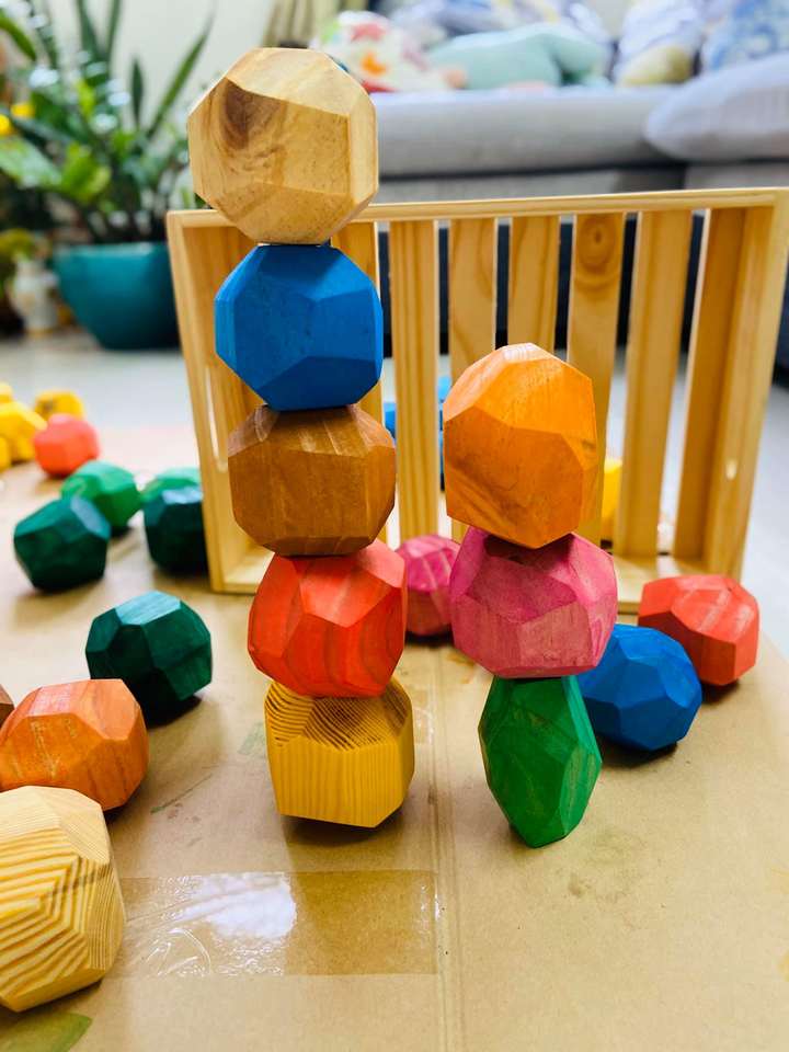 Montessori Stacking Sensory Toy Tumi Ishi Stone Set Wooden Balance Stones Baby Building Blocks