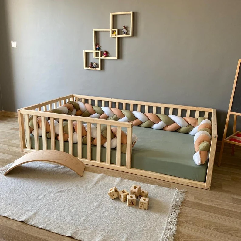 Montessori Toddler Floor Bed with Handmade Wooden Rails and Slats Kids' Children's Furniture for Entrance & Storage