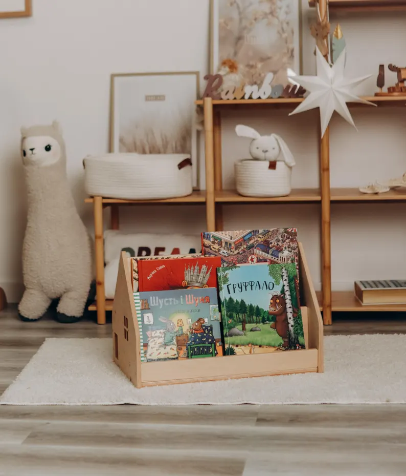 Montessori Kids Wooden Bookshelf for Toy Storage in Bedroom Kindergarten or School Book Display Shelf
