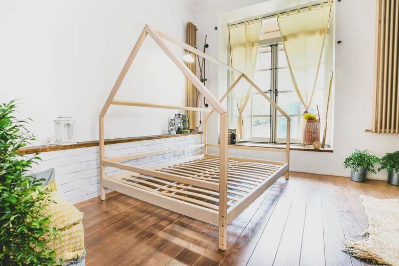 Montessori Wood Bed Frame Farmhouse-Style Bedroom Furniture with Floor Application