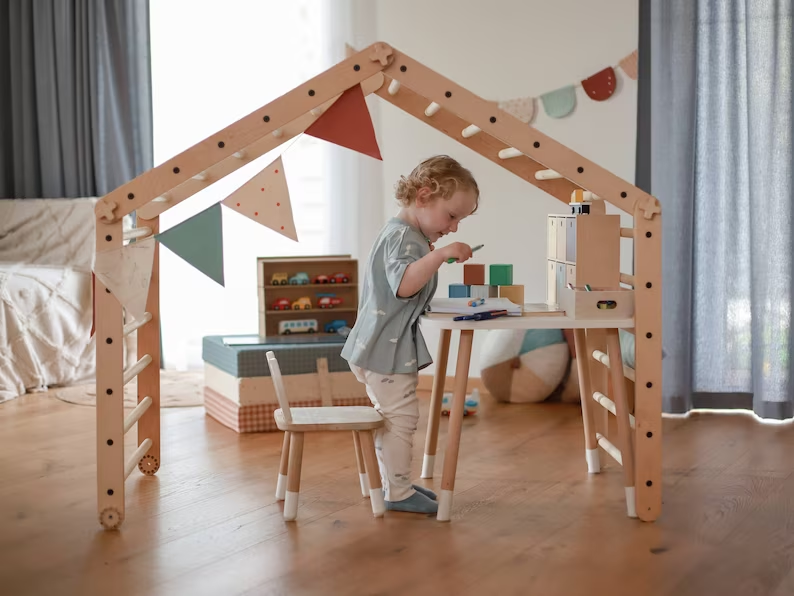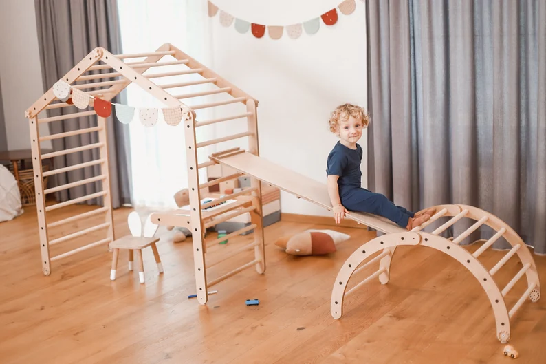 Montessori Wooden Climbing Set Triangle Arch Ramp Indoor Jungle Gym Climbing Frame Wooden Activity Toy